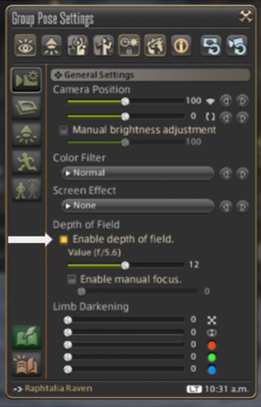 Now that we are in gpose, we can see a whole lot of options in the ‘Group pose Settings’. If you happen to ever click out of the settings, just hit ‘R’ and it will pull back up the settings window!Take a moment and look at all the tabs. Familiarize yourself with what you see!Now that you've had a look, I will be diving into each section one by one!